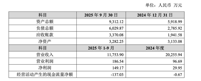 标的公司宾得利不算赚钱。根据公告,交易主体子公司宾得利2024年收入2亿元,净利润实现30万元;2025年前9个月收入1.2亿元,实现净利润149万元。宾得利尽管近年来均能实现盈利,但经营活动产生的现金流一直为负,公司应收账款较多。